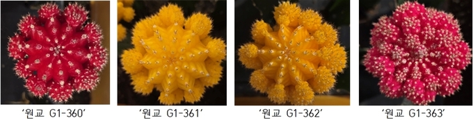 ‘원교 G1-360’ 계통은 진한 붉은색으로, 균형미가 우수하다. 어미 선인장을 중심으로 자식 선인장이 골고루 달려 균형미가 돋보이고 증식력이 우수하다.