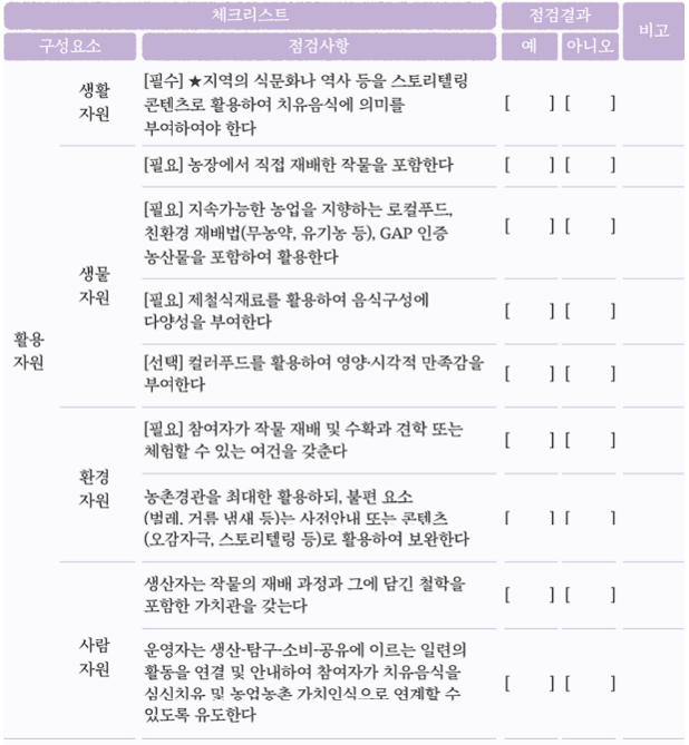 ▲치유음식 프로그램 점검표