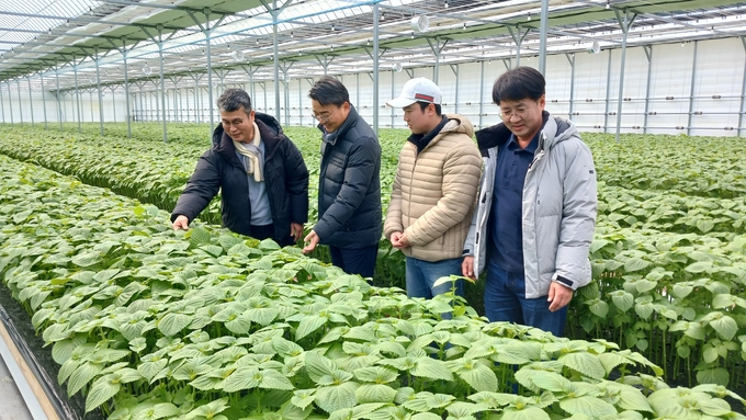 농촌진흥청(청장 이승돈) 국립식량과학원 김병석 원장은 2월 2일 충청남도 금산군 추부면 잎들깨 수경재배 농가와 산지유통센터를 찾아 겨울철 기습 대설과 한파 대비 시설 가온 조치와 생육 관리 현황을 점검했다.