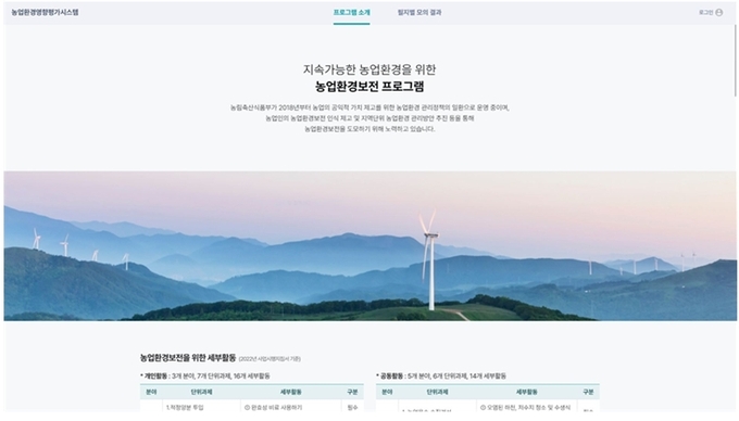 ▲농업환경보전활동 평가시스템 메인화면