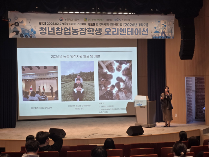 한국농어촌희망재단(이사장 박상희)은 ‘청년창업농 장학생’ 100여 명이 참석한 가운데 2026년도 「청년창업농장학생」 오리엔테이션을 2월 27일 한국마사회 문화공감홀에서 개최했다.