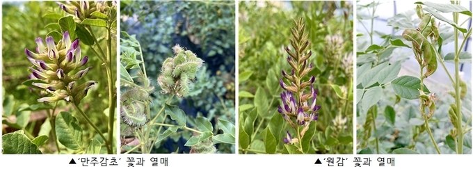 농촌진흥청은 국산 감초의 안정적인 종자 생산 체계를 확립하고자, 농가 재배 선호도가 높은 ‘만주감초’와 ‘원감’을 대상으로 5년간 온도 조절 시설에서 꽃 피고 열매 맺는 특성을 분석했다.