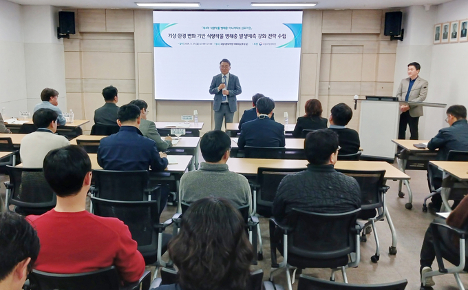 농촌진흥청(청장 이승돈) 국립식량과학원은 3월 27일 전북특별자치도 완주군 본원에서 ‘기상·환경 변화 기반 병해충 발생 예측 학술토론회(심포지엄)’을 열었다.