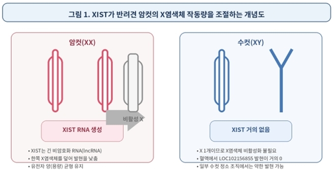 실제 분석 결과, 암컷 개의 혈액에서는 지스트(XIST)가 작동해 유전자 양을 조절하고 있지만, 수컷 개의 혈액에서는 거의 작동하지 않는다는 사실을 확인했다.
