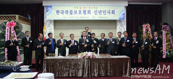 염병만 한국작물보호협회장은 지난 5일 서울 서초동 외교센터에서 가진 ‘2010신년인사회’에서 “작물보호업계는 안전성이 확보되고 효율성이 높은 새로운 작물보호제를 개발하는데 그 역량을 집중해 국민의 건강과 환경보전, 식품의 안전성에 대해 이바지 할 수 있는 책임 있는 농자재 산업으로서의 역할과 노력에 혼신의 힘을 다해 나갈 것”이라고 강조했다. 염 회장은 또 “안정적인 해외시장 확보 및 경쟁력 강화를 위해 추진 중인 FTA는 우리 경제의 성장기회지만 한편으론 세계와 무한 경쟁해야 하는 시대를 의미하는 것”이라며 “한국농업의 불확실성 증대 및 OECD회원국 중 식량자급률 26위인 우리나라로서는 안정적인 식량확보를 위한 농업정책이 무엇보다 우선되어야 할 것”이라고 말했다. 이날 인사회에는 강상조 농진청 차장을 비롯해 신현관 농식품부 친환경농업과장, 홍무기 농과원 농산물안전성부장, 이광하 농진청 농자재관리과장, 황민영 국민농업포럼 대표, 한호규 한국농약과학회장, 이문한 서울대 교수, 이규승 충남대 교수, 허장현 강원대 교수 등이 자리를 함께 했다. 또 이병만 경농 부회장, 최영찬 동부하이텍 부사장, 유병두 바이엘크롭사이언스 부사장, 윤재동 성보화학 부회장, 김용환 신젠타코리아 사장, 김인수 에스엠비티 회장, 한태원 한국삼공 사장 등 회원사 대표와 업계 관계자 등 200여명이 참석해 미래지향적이며 지속가능한 작물보호산업 발전을 위해 매진할 것을 다짐하며 새해인사와 덕담을 나눴다. |