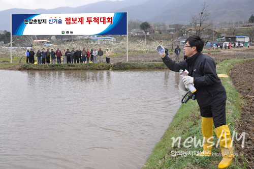 김영수 경농 마케팅 부장은 “최근 농촌인구의 고령화로 잡초를 쉽게 방제할 수 있는 노동력절감형 제초제가 시장 점유율을 높여가는 상황에서 경농의 점보제 우수성을 알리기 위해 이번 대회를 개최하게 됐다”며 “점보제는 4000㎡ 방제 시 논둑에서 별도의 장비 없이도 맨손으로 10~15분 동안 논안으로 투척해 우수한 잡초 방제효과를 나타낸다”고 설명했다. 이날 투척대회는 점보제 개발 설명회, 점보제 사용방법 안내, 점보제 투척대회로 이뤄졌으며 투척대회는 지름 1m 원 안에 점보제를 정확하게 던지는 방법으로 진행됐다. 송장규 동내면 사암이장은 이날 “점보제는 논둑에서 논안으로 던져 넣기 때문에 사용이 간편하다”고 소감을 말했다. 이욱재 춘천농업기술센터 작물지도담당자는 “점보제와 직접살포정제는 살포시간과 노동력을 관행살포 대비 절반 이상 크게 줄일 수 있고 피를 비롯한 다양한 잡초에 효과가 우수해 주먹탄, 황금볼 점보, 이편한 점보를 찾는 농업인들이 계속 늘고 있다”고 밝혔다. 한편 점보제 및 직접살포정제의 신기술은 2008년 산업자원부로부터 신기술제품 인증(NEP, New Excellent Product)을 획득해 농업인을 위한 혁신기술임을 인정받은 바 있다. <문의 : 02-3488-5889> |