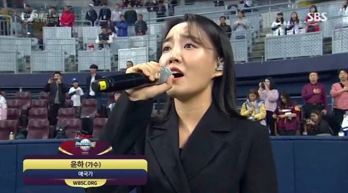 6일 윤하가 게시한 최근 게시물에는 애국가를 부르고 있는 사진이 담겨 시선을 끌었다.