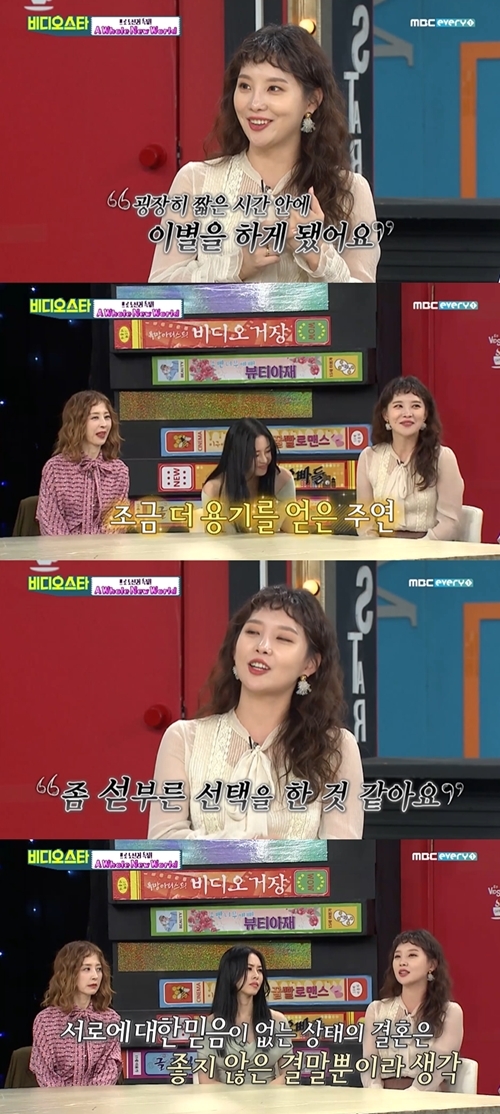 지주연은 "배우로서 성공하지 못했다는 생각도 했고 섣부른 상태에서 결혼을 한 것 같다. 나를 돌아본 계기가 됐다. 내 모든 인생관을 바꾼 계기가 됐다"고 덧붙였다.