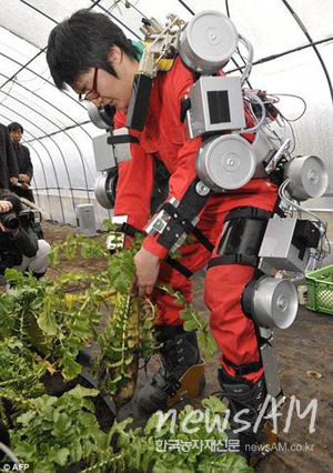 로봇 슈트 “팔·무릎 사용 농작업 활용” 농업과 IT융합의 사례로는 ‘농업용 로봇 슈트’ 개발이 손꼽힌다. 이 슈트는 동경농공대학 대학원이 2007년부터 2012년까지 개발 완료할 예정으로 있으며 판매가격은 3000달러 수준에 이를 것으로 전망되고 있다. 개발 목적은 기존의 농작업 기계는 사이즈가 커서 소규모 농지나 경사지, 비닐하우스 등 좁은 장소에서 사용하지 못하는 단점을 보완하기 위해 개발됐다. 농업용 로봇 슈트는 어깨·팔꿈치·허리·무릎의 4군데에, 좌우 합계 8개의 모터가 있어 장착자의 움직임을 센서가 감지하고 모터에 의해 동작을 돕는 로봇이다. 팔 작업이 필요한 포도 수확과 무릎을 많이 사용하는 무 수확 시 60~70% 정도 생력화 실현이 가능한 것으로 나타나고 있다. 자동주행 모내기 로봇 “비용·노동력 절감” 중앙농업종합연구센터에서 지난 1997년부터 개발에 나서 2008년 개발 완료한 ‘자동주행 모내기 로봇’은 경제산업성의 ‘올해의 로봇’ 대상을 수상했다. 이 로봇은 시판된 모내기 기기에 RTK-GPS와 IMU(관성측정장치)를 연결해 경사와 진행 방향을 각각 계측해 컴퓨터로 각부의 조작량을 산출하고 자율 주행할 수 있다. |