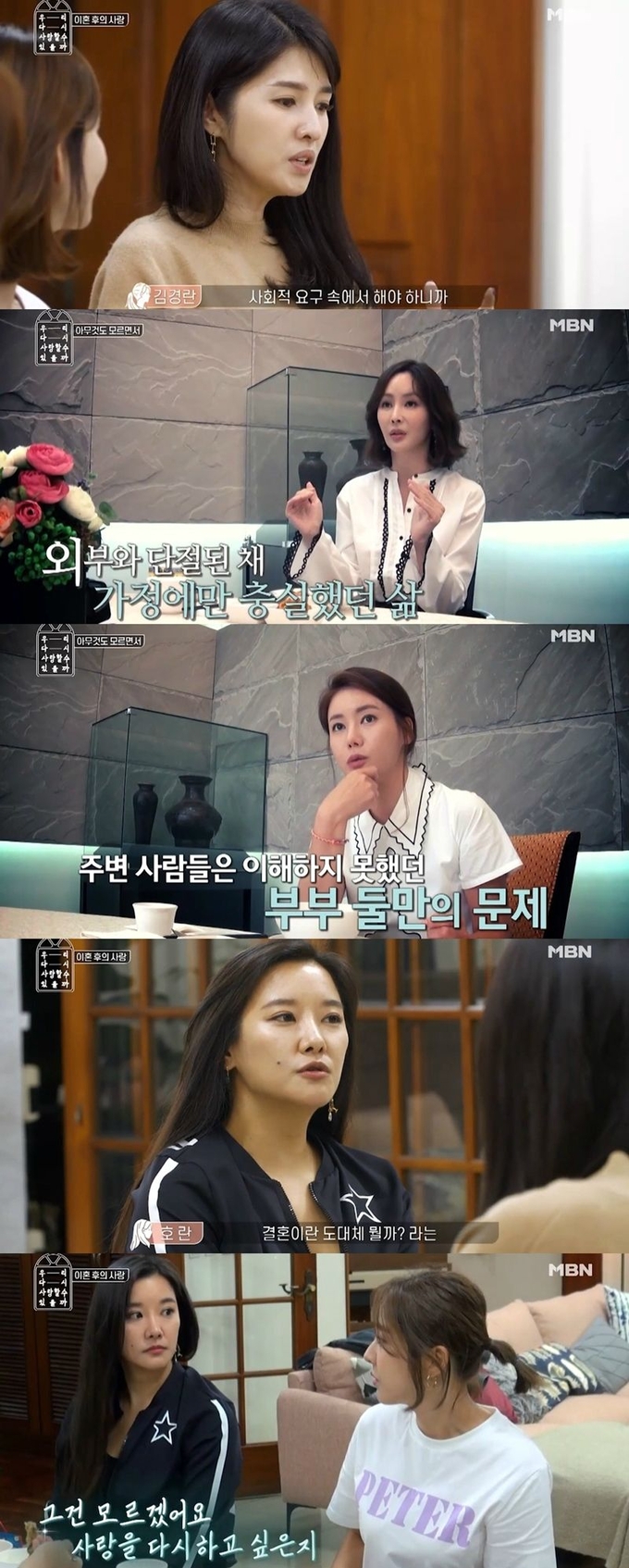[농기자재신문=박수현 기자] 13일 첫 방송 된 MBN ‘우리 다시 사랑할 수 있을까’(이하 ‘우다사’)에서는 아나운서 출신 배우 겸 방송인 김경란이 자신의 이혼 경험에 대한 솔직한 심경을 고백하는 모습이 그려졌다.