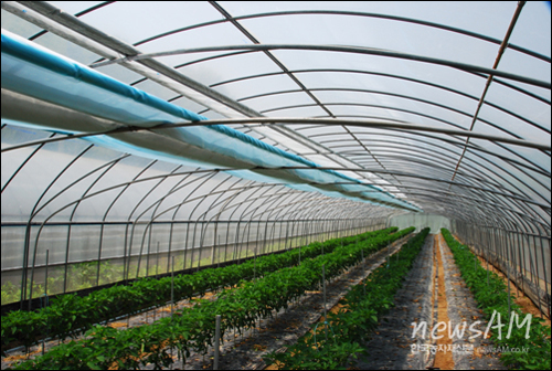 농촌진흥청은 최근 단동비닐하우스 내부에서 사용할 수 있는 다겹보온커튼장치 2종을 개발하고 시설오이 재배농가에서 현장평가까지 마쳤다고 밝혔다. 단동비닐하우스는 우리나라 비닐하우스의 약 83%를 차지하며 단위면적당 표면적이 넓어 에너지 손실이 많다. 그동안 다겹보온커튼장치는 연동하우스용과 눈이 적게 오는 남부지역을 중심으로 단동비닐하우스 외부용 장치가 보급돼 왔다. 눈이 많이 오는 중·북부지역에서 사용할 수 있는 단동비닐하우스 내부용 장치는 내부의 공간적, 구조적 제약으로 다겹보온커튼장치 설치에 어려움이 있었다. 이러한 문제점을 해결하기 위해 개발한 단동비닐하우스 다겹보온커튼장치는 감아올림식과 슬라이딩식 2종류로 나뉜다. 감아올림식 다겹보온커튼장치는 개폐모터를 하우스 양쪽 측면에 2개 설치해 중앙부로 감아올리는 방식으로, 겨울철 보온뿐만 아니라 여름철 하우스 천정 부위의 그늘 조절이 가능해 농작업에 편리성을 도모할 수 있다. 슬라이딩식 다겹보온커튼장치는 중앙부에 드럼과 개폐축을 설치해 하우스 양쪽 측면으로 다겹보온커튼을 늘어뜨리는 방식으로 하우스 안에 그림자가 형성되지 않아 채광성이 우수한 것이 특징이다. 실제 오이재배 단동비닐하우스에서 시험한 결과, 다겹보온커튼을 설치하면 외부 기온이 영하 15℃로 낮아졌을 때도 영상 기온을 유지할 수 있었으며, 이 커튼을 설치하지 않은 3중 피복 비닐하우스에 비해 난방연료를 38~43% 절감할 수 있는 것으로 나타났다. 또 오이생육에 있어서도 초장, 엽수, 엽폭 등에 상당한 차이를 보여 수확량이 10~20% 증가하고 난방비용이 대폭 절감돼 농가 소득이 연간 10a당 313만4000원 증가되는 것으로 조사됐다. |