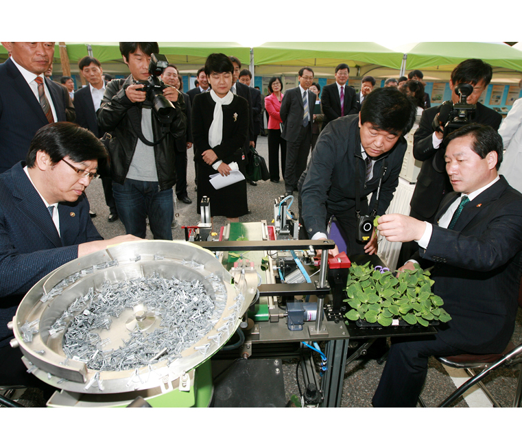 유정복 농림수산식품부 장관은 최근 농촌진흥청을 첫 방문해 업무보고를 받고 노동력 절감 및 생산성 향상을 위해 개발한 채소접목로봇을 직접 시연했다.