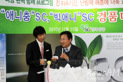 SG한국삼공은 그동안 전국의 ‘애니충’, ‘빅애니’ 구매 고객을 대상으로 ‘농민감사 경품이벤트’ 응모권 4만여장을 접수 받았다. 이에 따라 지난 15일 한국작물보호협회, 작물보호제판매협회, 언론사, 원제사 관계자들을 초청해 경품 추첨행사를 갖고 1등 10명, 2등 50명, 3등 7154명, 4등 1만414명, 5등 1만5705명 등 총 3만3333명의 당첨자를 뽑았다. 이들 당첨자 중 1등 10명에겐 벽걸이 겸용 46인치 LED TV 각 1대씩이 주어지며, 2등 50명에겐 190L 김치냉장고 각 1대씩, 3등은 애니충 20㎖ 각 1병, 4등 한국삼공 신규 전착제 마쿠피카 각 1병, 5등 고급 주방세제 각 1병 등이 제공된다. 이날 추첨은 추첨인의 직접 추첨으로 이뤄졌으며, 당첨자 확인은 SG한국삼공의 홈페이지(www.30agro.co.kr)와 참여 대리점에서 확인할 수 있다. 한태원 SG한국삼공 대표는 이날 경품추첨에 앞서 “최종소비자인 농업인에게 다가갈 수 있는 방법을 생각하다 이번 행사를 준비하게 됐다”며 “밀어내기 식 영업에서 벗어나 기술과 정직을 바탕으로 다이렉트 영업·마케팅·홍보를 통해 농업인에게 다가설 것”이라고 강조했다. |