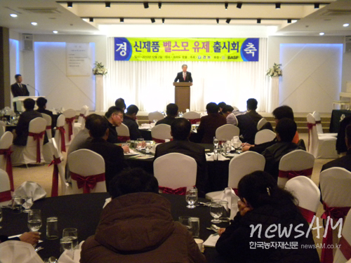(주)경농(대표이사 이병만)은 최근 경기도 이천 미란다 호텔과 전북 광주 프라도호텔에서 2011년도 신제품 살충제인 ‘벨스모 유제’의 출시회를 시작으로 전국 출시회를 마쳤다고 밝혔다. 이번 전국 출시회는 다양한 국가에서의 ‘벨스모 유제’의 방제효과, 국내 적용실험, 시범 약제 성공 사용 사례 등이 소개했다. ‘벨스모 유제’는 쎄미카바존계의 새로운 살충제로 나방유충의 신경전달을 차단해 신속하게 섭식을 중단시키는 나방 전문약이다. 방제가 어려운 각 종 순나방, 파밤나방, 배추좀나방, 담배나방 등에 우수한 효과를 발휘한다. 특히 섭식저해 효과가 강력해 잎과 과실 등에 피해를 최소화할 수 있다. 또 환경기준이 까다로운 유럽, 미국 등의 농업선진국에서 안전성과 신속한 방제효과를 인정받았으며 나방유충의 전 생육단계에 작용하기 때문에 살포시기에 비교적 영향을 받지 않는다. ‘벨스모 유제’ 출시회에 참석한 홍재찬 현대농약사 대표(경기도 동두천시)는 “저항성나방이 골칫거리였는데 벨스모 유제라면 안심할 수 있겠다”며 “벨스모를 처리한 나방의 반응을 직접 눈으로 확인하니 정말 성능이 우수한 약제인 것으로 판단돼 앞으로 지역 농업인들에게 적극 추천할 것”이라고 소감을 말했다. |