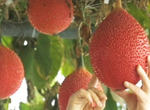 농촌진흥청에 따르면 지난해 4월 종자를 심어 무가온 하우스에서 재배된 게욱이 1월 현재 붉은색 과일들이 열면서 국내 적응시험에서 통과됐다. 이에 따라 농가현장 적응시험과 상품평가 등을 거쳐 2~3년 후 소비자들에게 선보일 예정이다. 게욱은 박과에 속하는 여러해살이 덩굴성식물이다. 베트남 등 동남아 열대지역 과일로써 다 자라면 메론 크기의 붉은색 열매가 된다. 겨울철 12℃까지 견디는 게욱의 수확시기는 겨울철(12~1월)이다. 게욱은 전통적으로 약용 및 음식재료로 이용돼 왔다. 특히 베트남에서는 게욱을 기쁨과 행운의 상징인 귀한 과일로 여겨 새해맞이, 결혼식 등의 행사에서 중요한 요리로 이용한다. 붉게 익은 게욱 내부의 종자 주위 젤라틴 부분을 사용해 밥을 지으면 붉은색의 윤기가 흐르며 다이어트 주스로도 이용되고 있다. 최근에는 게욱 안에 암세포 확산을 억제하는 단백질이 들어 있으며 비타민A 결핍을 위한 천연 보충제로서도 뛰어난 잠재력을 가진 귀중한 자원으로 보고되고 있다. |