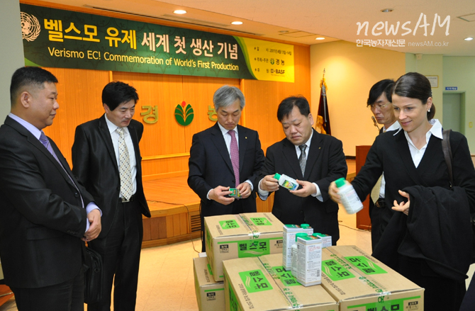 (주)경농은 최근 원료공급사 BASF와 공동으로 경농 대구공장에서 지역 농민 등 300여명의 관계자가 참석한 가운데 ‘벨스모 유제 세계 첫 생산 기념식’을 갖고 ‘벨스모’유제 국내 판매개시를 선언했다고 밝혔다. 이진 경농 마케팅부분장 상무는 “방제가 어려운 각종 나방류와 저항성 나방류 방제를 위해 벨스모유제를 출시했다”며 “과수·채소류의 고품질 생산과 농가소득 향상에 기여할 것”이라고 말했다. ‘벨스모’유제는 유충의 나트륨채널에 작용해 신경 전달을 차단하는 새로운 기작의 살충제로 유충의 섭식저해 효과가 뛰어나 작물의 열매와 잎 보호에 효과적이다. 특히 방제가 어려운 순나방류, 굴나방류, 파밤나방, 담배나방, 배추좀나방 등 각종 나방류에 뛰어난 살충효과를 발휘하며 유충의 모든 단계에서 활성이 높아 살포시기에 민감하지 않다. 또 인축 및 환경에 대한 안전성도 뛰어나다. ‘벨스모’ 유제는 이 같은 약효로 전세계 30여개 나라에 등록이 추진 중이다. (주)경농은 ‘벨스모’유제를 복숭아 복숭아순나방에 등록했으며 향후 적용작물·해충에 추가로 등록한다는 방침이다. |