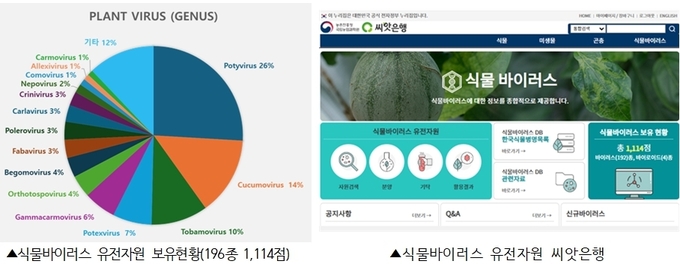 이렇게 확보한 식물바이러스 중 자원 수 부족 등으로 분양이 어려운 유전자원을 제외한 161종 719점의 정보를 공개했다. 이들 유전자원은 씨앗은행에서 분양 중이다.