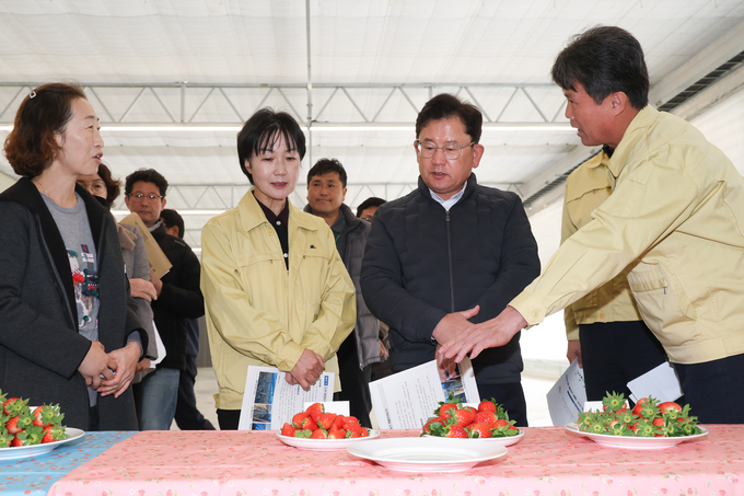먼저 이 청장은 딸기 시설 온실(비닐하우스) 난방·보온 설비를 살펴보고, 큰 눈으로 인한 붕괴 위험에 대비해 만반의 준비를 갖춰야 한다고 말했다. 인삼 재배 농가에서는 해가림 구조물이 안정적인지, 배수로 정비 상태는 양호한지 등을 둘러봤다.