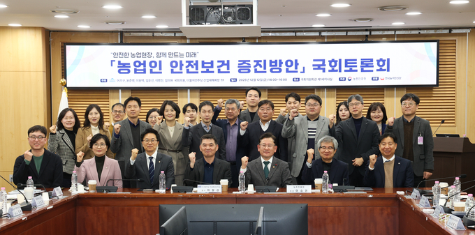 농촌진흥청(청장 이승돈)이 주관하고 어기구, 윤준병, 이원택, 임호선, 이병진, 임미애 국회의원과 더불어민주당 산업재해예방 특별위원회(TF 단장 김주영 의원)가 주최한 ‘농업인 안전보건 증진 방안’ 국회 토론회가 12월 12일 국회의원회관 제1세미나실에서 개최됐다.