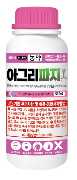 - 무기동제와 농업용 항생제의 합제로 예방 및 치료효과 발휘