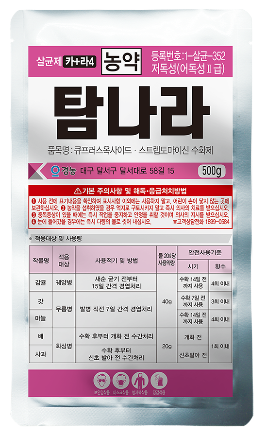 - 코퍼옥시클로라이드+가스가마이신(45%*5.75%) 혼합제로 동제와 항생제의 이상적인 조합