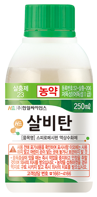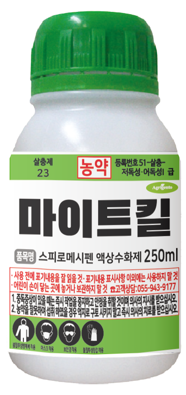 - 해충의 지질 생합성을 저해하여 약효를 발휘하며, 점박이응애 및 아주 작은 미소응애에 탁월한 방제 효과