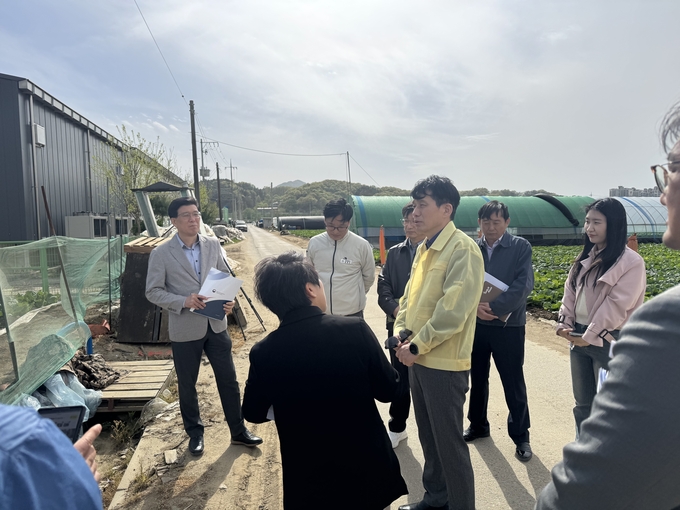 농촌진흥청 김상경 차장은 4월 21일 오후 충청남도 아산시 배방읍에 있는 봄배추 재배지를 방문해 규제병해충인 ‘씨스트선충’ 공적 방제 추진 현황을 청취하고, 배추 모종 생육 상태 등을 점검했다.