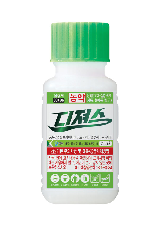 작물 생육이 진행되면서 진딧물·총채벌레·가루이·나방 등 다양한 매개충이 동시에 문제되는 시기에는 ‘디져스’를 활용한 종합 방제가 효과적이다. 디져스는 플룩사메타마이드(캡틴)와 피리플루퀴나존(팡파레에스)의 복합 성분으로, 진딧물·총채벌레·담배가루이·노린재·나방까지 폭넓게 방제할 수 있다. 특히 바이러스를 매개하는 주요 해충 대부분을 한 번에 관리할 수 있고, 개화기 진딧물부터 착과기 총채벌레, 수확기 가루이까지 생육 단계별로 활용 가능해 바이러스 매개충의 밀도를 장기간 낮추는 데 도움이 된다.