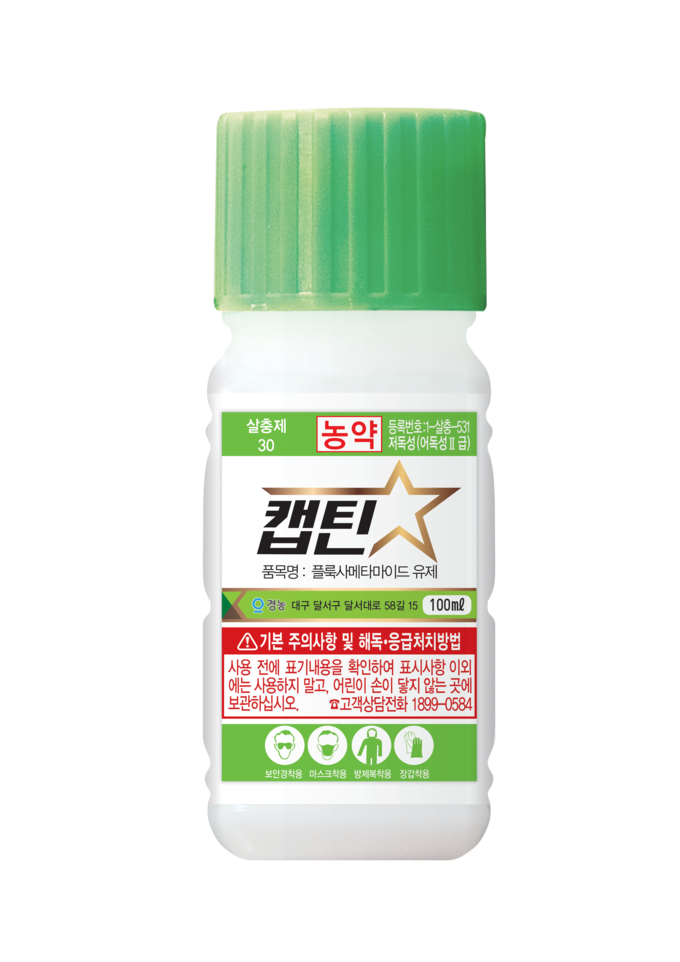 정식 초기에는 먼저 나방류와 총채벌레를 빠르게 억제하는 것이 중요하다. ‘캡틴’은 플룩사메타마이드 성분의 신규 계통 살충제로, 총채벌레와 응애, 나방류에 속효적으로 작용하며 기존 약제와 교차저항성이 없는 것이 특징이다. 특히 약제 처리 후 30분 만에 경련, 24시간 만에 치사가 시작될 정도로 빠른 효과를 보이며, 방제가 어려운 고령충과 총채벌레에도 우수한 살충 효과를 나타낸다. 고추, 멜론, 수박, 배추, 상추 등 다양한 원예작물에 등록돼 있어 정식 직후 초기 해충 밀도를 낮추는 데 적합하다.
