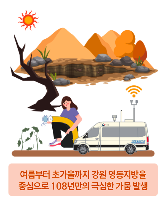정부는 이런 가뭄 피해를 줄이기 위해 토양유효수분율 기준 전국 167개 시·군별 밭가뭄 현황 및 일주일 무강우 시 밭가뭄 전망을 예측하여 자료를 제공하고(2월~12월, 주 1회) 농업기상재해 조기경보서비스를 전국으로 확대 운영(’25.10.)했다. 또한, 올해부터는 농작물 재해위험지도 작성을 위해 기상·재해 정보 데이터베이스를 구축할 예정이다.