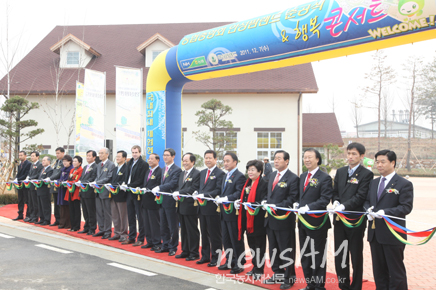 농협중앙회는 지난 7일 경기 안성시 공도읍 신두리에서 서규용 농림수산식품부 장관, 김학용 한나라당 의원, 황은성 안성시장을 비롯해 축산 관련 단체장과 축협 조합장, 지역주민 들이 참석한 가운데 ‘안성팜랜드 준공식’을 가졌다. ‘국내최대 체험형 놀이목장’을 표방하는 안성팜랜드는 농협중앙회가 2007년부터 추진해온 농어촌관광휴양단지 사업의 최종 결과물로 총 352억원을 투입해 129만㎡규모로 조성됐다. 주요시설로는 ▲다양한 가축들과 함께 농축산체험을 할수 있는 ‘무무빌’ ▲국내최대규모의 실내 농축산전용 행사장 ‘Agrium’ ▲국내 우수농축산물을 구입하고 맛을 볼 수 있는 ‘푸드빌’ ▲ 대한민국 승마사업을 활성화 할 ‘호스빌’ ▲30만평의 광활한 초원의 경관단지 ‘미루힐’ 등을 갖추게 된다. |