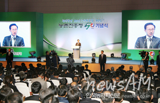 이명박 대통령은 3일 열린 기념식에서 “세계 농식품시장 규모가 자동차와 IT를 합친 것보다 크다”며 “선진국들과 당당히 겨루기 위해 첨단 농업기술로 농업경쟁력을 더욱 높여 달라”고 주문했다. |