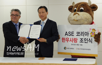 이번 조인식은 경제 활성화를 위해 땀 흘리는 기업 임직원들의 사기를 충전하고 한우의 우수한 맛과 품질을 알려 한우 소비를 촉진하자는 취지로 마련됐다. 이번 조인식을 계기로 ASE코리아는 직원대상 구내식당 식단 중 사용했던 수입 쇠고기를 한우로 변경하기로 결정했으며 한우자조금은 감사의 뜻으로 조인식 당일 ASE코리아 임직원 3000여 명 대상 중식에 한우 불고기를 제공했다. 또한 추석 대비 선물세트를 시중가보다 저렴하게 구매할 수 있도록 예약 판매도 실시했다. 한우자조금관리위원회의 서정훈 홍보마케팅팀장은 “이번 조인식을 계기로 전국에 있는 기업들과 지속적으로 한우사랑 기업 캠페인을 추진할 방침”이라고 밝혔다. |