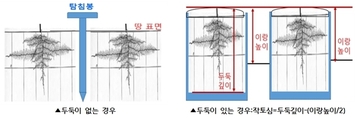 농촌진흥청(청장 이승돈)은 겨울철 딸기와 풋고추 시설 재배지 토양의 양분 집적으로 작물 중량과 품질이 저하되고, 토양 건강성이 떨어지는 것을 예방하기 위해 ‘현장 진단 처방법’을 확립했다. 현장 진단 처방법은 작물 재배 전 경운깊이(작토심)를 측정하고, 작물 재배 기간 토양의 수용성 성분을 분석해 양분을 처방하는 기술이다. 우선 토양을 경운하기 전 탐침봉으로 경운깊이를 측정해 경운깊이가 35~40cm 이상이 되는지 확인하고, 이보다 얕으면 깊게 경운한다. 작물 재배 중에는 같은 필지 내에서 10~15지점을 골라 토양을 채취한 후 골고루 섞어 5mL 용기에 담고 증류수를 넣은 후 수용성 성분인 pH, 전기전도도, 질산이온, 인산이온, 칼륨이온 등 5항목을 측정한다. 분석 시간은 4~5시간 정도다. 이렇게 측정한 수치가 적정범위에 들어오도록 비료량을 조절하면 된다. 경남 진주 풋고추 재배 농가에 현장 진단 처방법을 2년간 적용한 결과, 기존보다 비료량이 1/2로 줄어 질산이온 농도는 66%(299→102mg/L), 칼륨이온 농도는 52%(75→35mg/L) 감소해 수치가 적정범위 내로 들어왔다. 농가 생산량은 2배(9.9아르당 4.4→7.4톤) 증가했다.