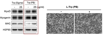 농촌진흥청(청장 이승돈)은 한국한의학연구원과 함께 식용곤충 꽃벵이(흰점박이꽃무지 애벌레) 유래 추출물이 근감소 억제에 효과가 있음을 과학적으로 확인했다. 최근 고령 인구 증가로 근감소증에 관한 관심이 높아지고 있다. 미국은 2016년, 우리나라는 2021년 제8차 표준질병‧사인분류(KCD-8) 개정안에서 근감소증에 질병코드(M62.5)가 부여됨에 따라 근감소증을 질병으로 인정하고 관련 연구를 진행하고 있다. 그러나 현재 근감소증 치료제가 없어 근감소증 개선에 도움을 줄 건강기능식품 소재, 제제 등의 개발이 필요하다. 연구진은 꽃벵이 70% 에탄올 추출물에서 극성이 다른 용매를 이용해서 분획물을 제조했다. 그리고 근감소 완화 효과를 밝히기 위해 각 분획물을 근육세포주(C2C12)에 적용해 분획물의 생리활성을 확인했다. 그 결과, 부탄올 분획물에서 근육세포의 분화 촉진이 관찰됐다. 이 분획물의 지표 물질은 단백질을 구성하는 필수아미노산인 엘(L)-트립토판으로 근육세포 분화에 관련된 것으로 확인됐다. ▲흰점박이꽃무지 지표성분의 근관 분화 마커 비교 및 세포분화 비교 또한, 부탄올 분획물에서 골격근 분화 관련 표지인 ‘근세포 분화 유도(MyoD)’, ‘근관 형성 단