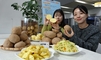 지난 6일 대구광역시 군위군 농촌진흥청 국립원예특작과학원 사과연구센터 시험 재배지에서 연구원들이 새콤달콤한 여름 사과 ‘골든볼’ 품종을 수확하고 있다. 지구온난화로 사과 껍질에 색이 잘 들지 않는 문제를 해결하기 위해 육성한 '골든볼'은 이름처럼 노랗게 익어 따로 착색 관리가 필요 없다.