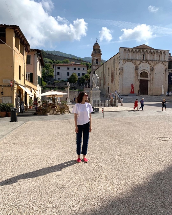 지난 18일 수현이 SNS에 사진을 게재했는데, 사진 속 수현은 이탈리아에서 흰티와 청바지로 거니는 모습이 포착됐다.