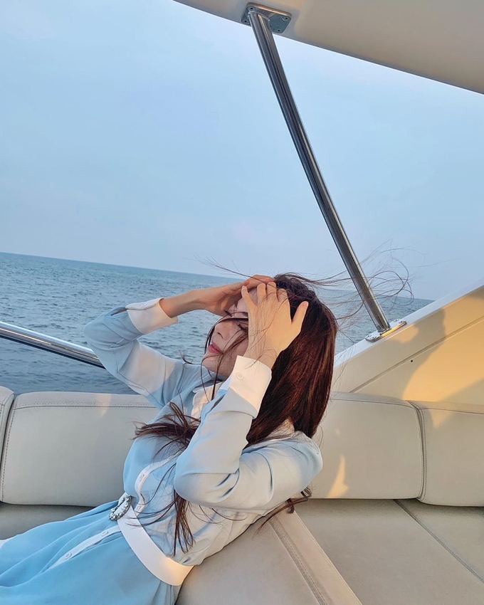 공개된 사진 속에는 김민영의 모습이 담겨 있는데, 바람에 의해 헝클어진 머리를 정리하고 있다.