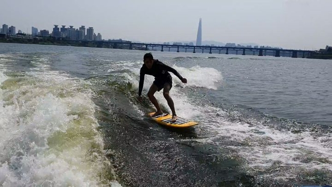 임시완은 지난 21일 인스타그램에 사진과 함께 “My first time Wake surfing in Hangang!”라는 글로 근황을 공개했다.