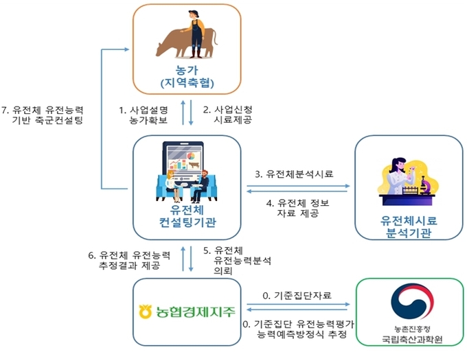 ▲한우 암소 유전체 유전능력 예측 서비스 체계도