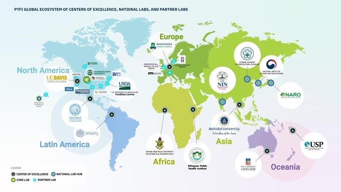 식품주기율표 이니셔티브에는 우리나라를 포함한 4개의 ‘국가 연구실 허브(National Lab Hub)’, 9개의 ‘연구 우수센터(Center of Excellence)’, 12개의 ‘협력연구실(Collaborating Lab)’이 참여하고 있다.
