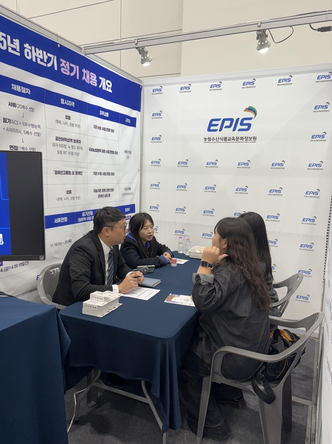 한편, 농정원은 11월 6일(목) 열린 ‘2025 세종청년취업박람회’에 참여하여 지역 청년들에게 농정원의 채용 기회를 알리고, 다양한 취업준비 팁과 맞춤형 상담을 제공하였다.