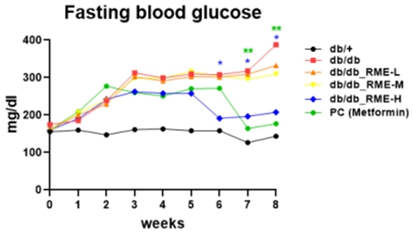 연구진은 마우스 모델에 토끼고기 추출물을 8주간 먹이며 변화를 관찰했다. 실험 결과, 추출물을 섭취한 실험군은 대조군보다 공복혈당 수치가 최대 46.5% 낮게 나타났다.