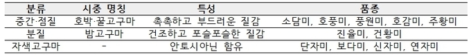<국내 주요 고구마 품종 특성>