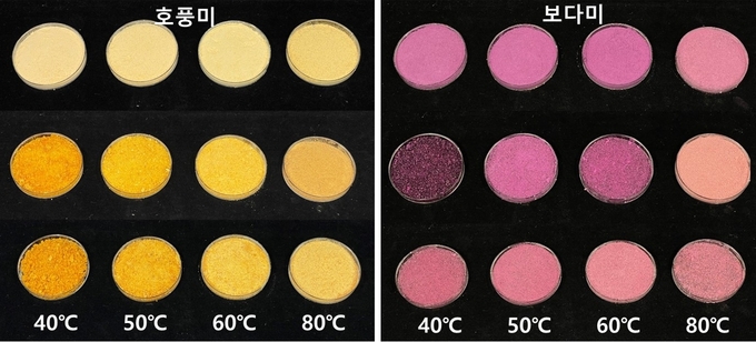 ▲건조 온도에 따른 고구마 분말