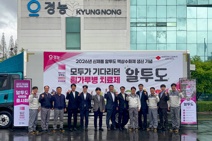 시설채소 재배 현장에서 흰가루병 방제에 대한 어려움이 커지고 있다. 흰가루병은 발생 속도가 빠르고 동일 계통의 약제를 반복 사용하는 경우 저항성이 쉽게 나타나는 대표적인 병해다. 이러한 이유로 기존 약제의 효과가 떨어졌다는 현장의 반응도 늘고 있다. 흰가루병을 효과적으로 방제할 수 있는 새로운 작용기작의 전문 제품에 대한 관심이 높아지는 가운데, (주)경농(대표이사 이용진)은 2026년 신제품 흰가루병 전문약 ‘알투도’의 첫 생산을 기념해 지난 9일 대구 공장에서 기념식을 개최했다.