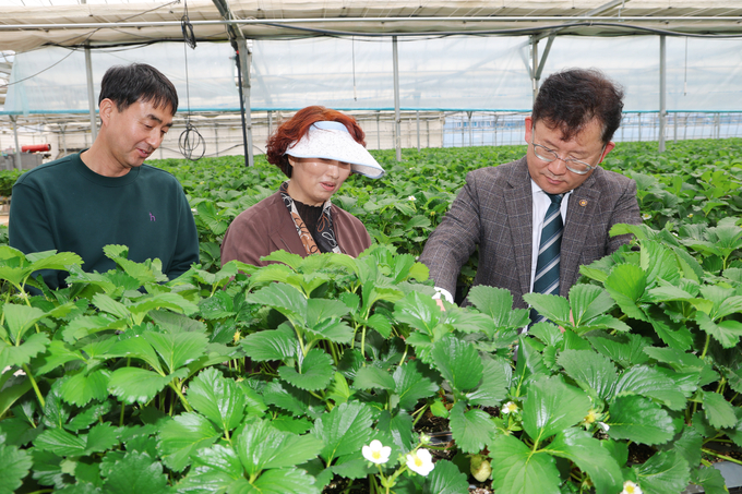 이 청장은 기관 방문을 마친 뒤, 산청군으로 이동해 경남농업기술원·산청군농업기술센터가 보급한 ‘히트펌프 활용 수냉식 냉난방 시스템’을 도입해 딸기를 재배하는 농가를 방문했다.