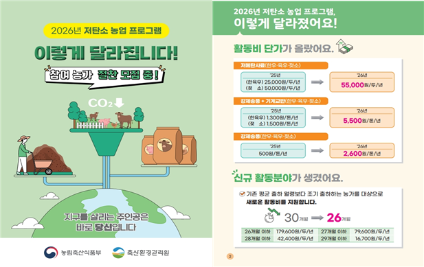 축산환경관리원(원장 문홍길)은 농림축산식품부와 함께 ‘2026년 저탄소 농업 프로그램(축산)’ 참여 농가를 모집하고 있다.