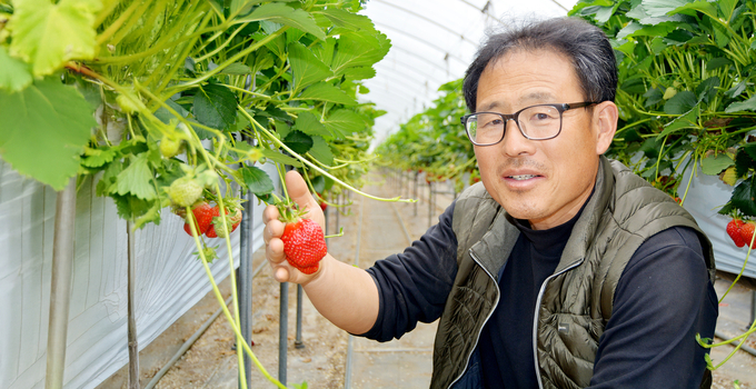 김희동 농부는 충북 진천군 초평면에서 15년째 오이 시설하우스 양액재배를 하고 있으며, 딸기는 7년째 재배하고 있다. 딸기 시설하우스는 11개 동으로 2동은 자가 육묘용으로 운영하고 있다.
