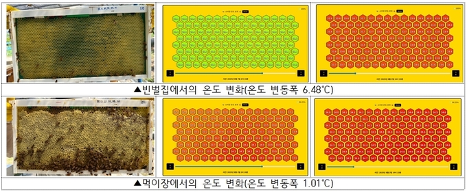 꿀벌이 안정적으로 겨울을 나려면 월동 벌무리의 온도 관리가 중요하다. 꿀, 꽃가루가 들어 있는 벌집인 먹이장 단열효과를 연구한 결과, 꿀을 채워 넣은 먹이장은 빈 벌집보다 내부 온도 변동이 적어 겨울철에 안정적으로 온도를 유지하는 것으로 나타났다. 이에 따라 농가에서는 겨울철에 활용할 수 있도록 보온용 먹이장을 충분히 확보해야 한다.